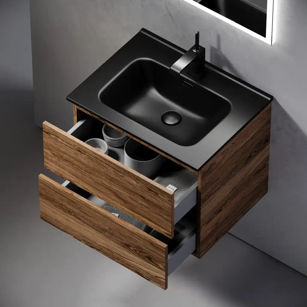 Тумба подвесная SANCOS Urban 590х450х550, c двумя ящиками оснащенными доводчиками, дуб чарльстон, арт. UR60ECH