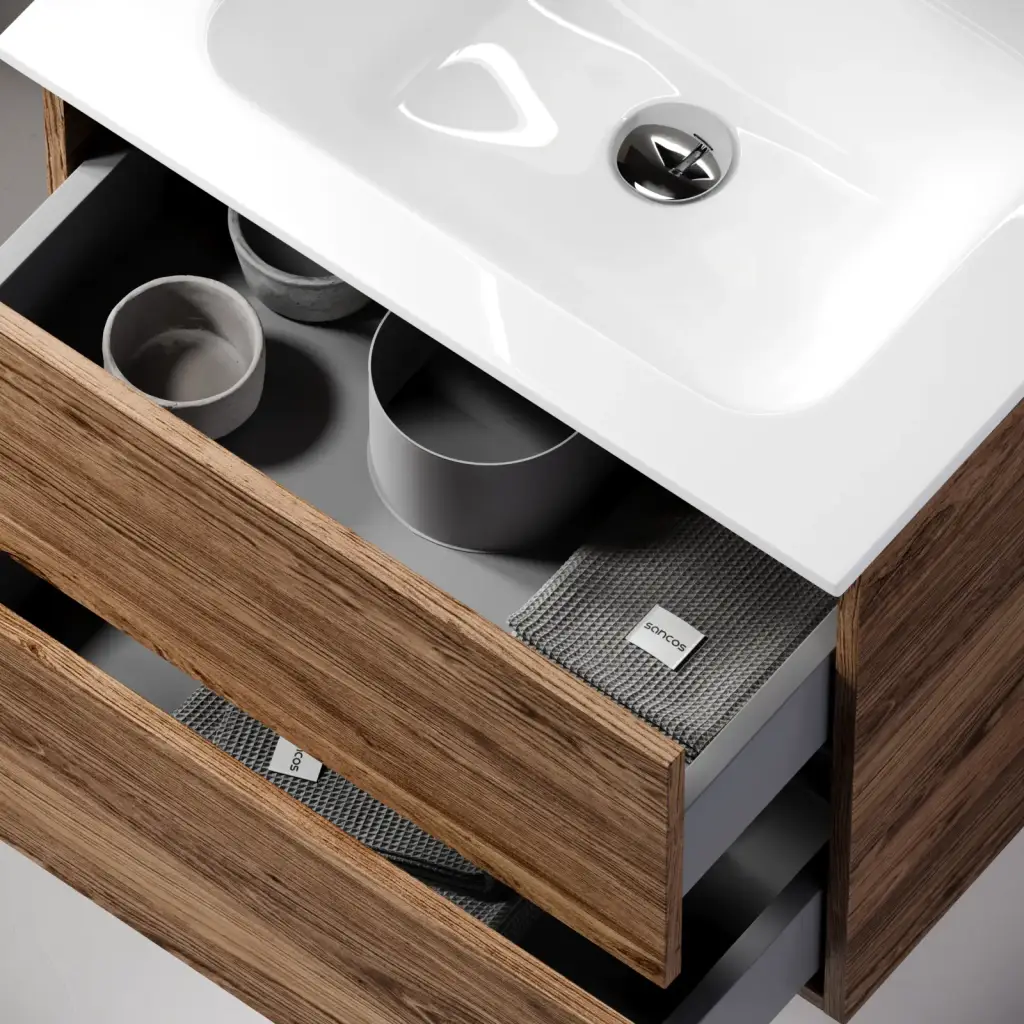 Тумба подвесная SANCOS Urban 690х450х550, c двумя ящиками оснащенными доводчиками, дуб галифакс натуральный , арт. UR70EG