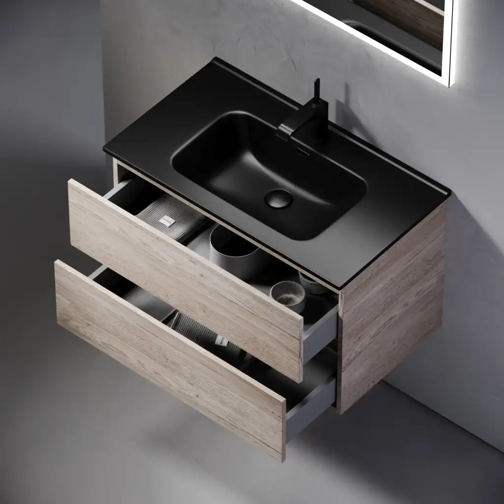 Тумба подвесная SANCOS Urban 790х450х550, c двумя ящиками оснащенными доводчиками, дуб галифакс натуральный , арт. UR80EG