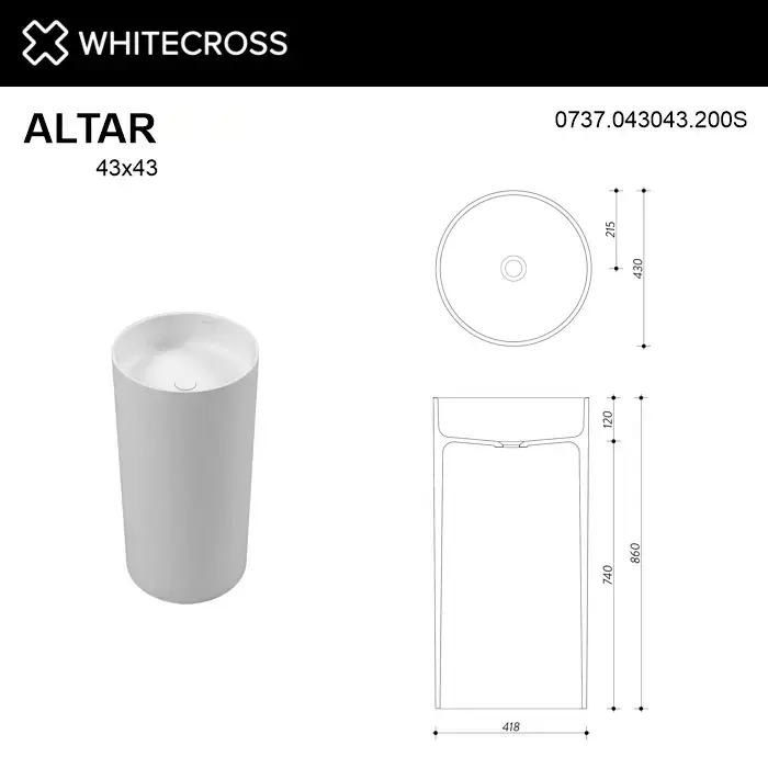 Умывальник WHITECROSS Altar D=43 (RAL мат) иск. камень;Умывальник WHITECROSS Altar D=43 (белый мат) иск. камень