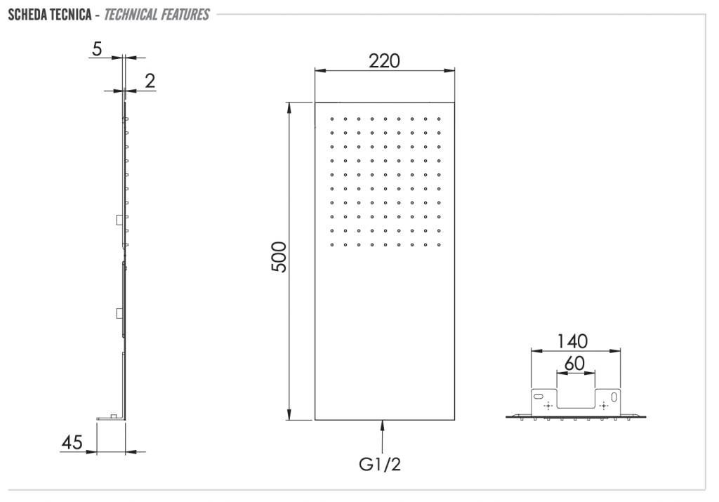 Верхний душ настенный 50x22 см Remer INOX SS350UFX