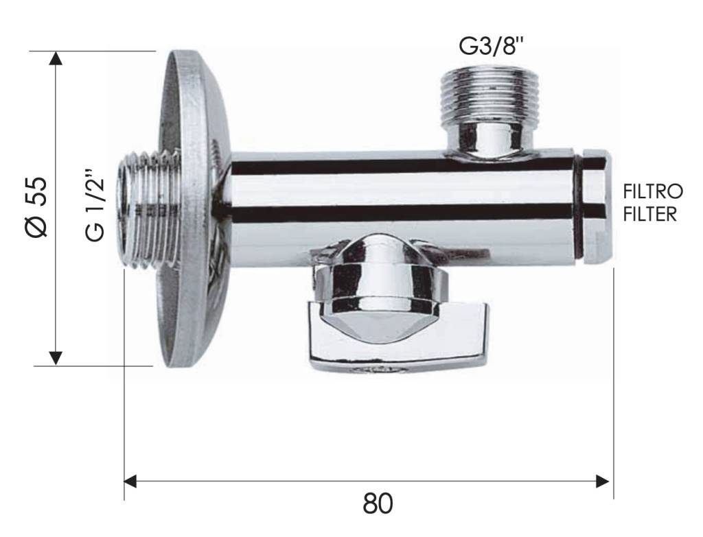 Запорный вентиль с фильтром 3/8*1/2 Remer 1231238
