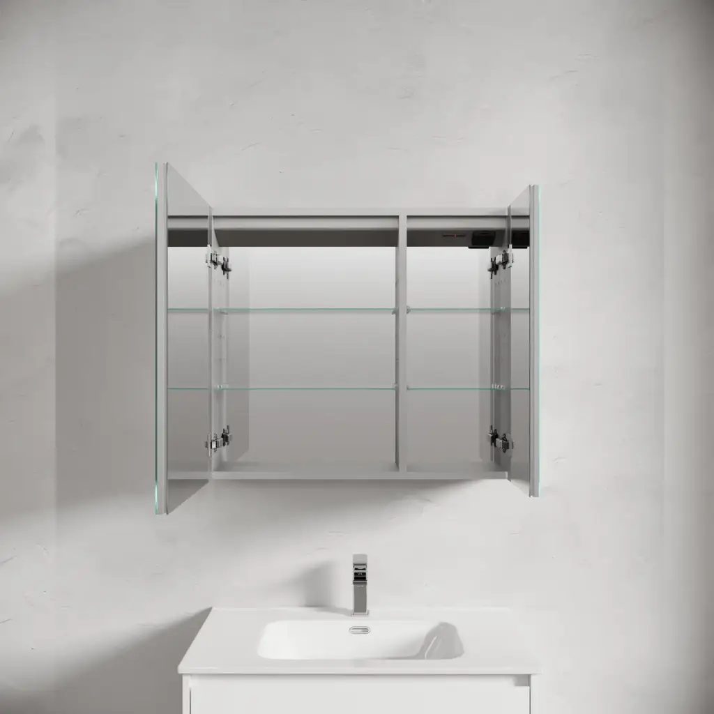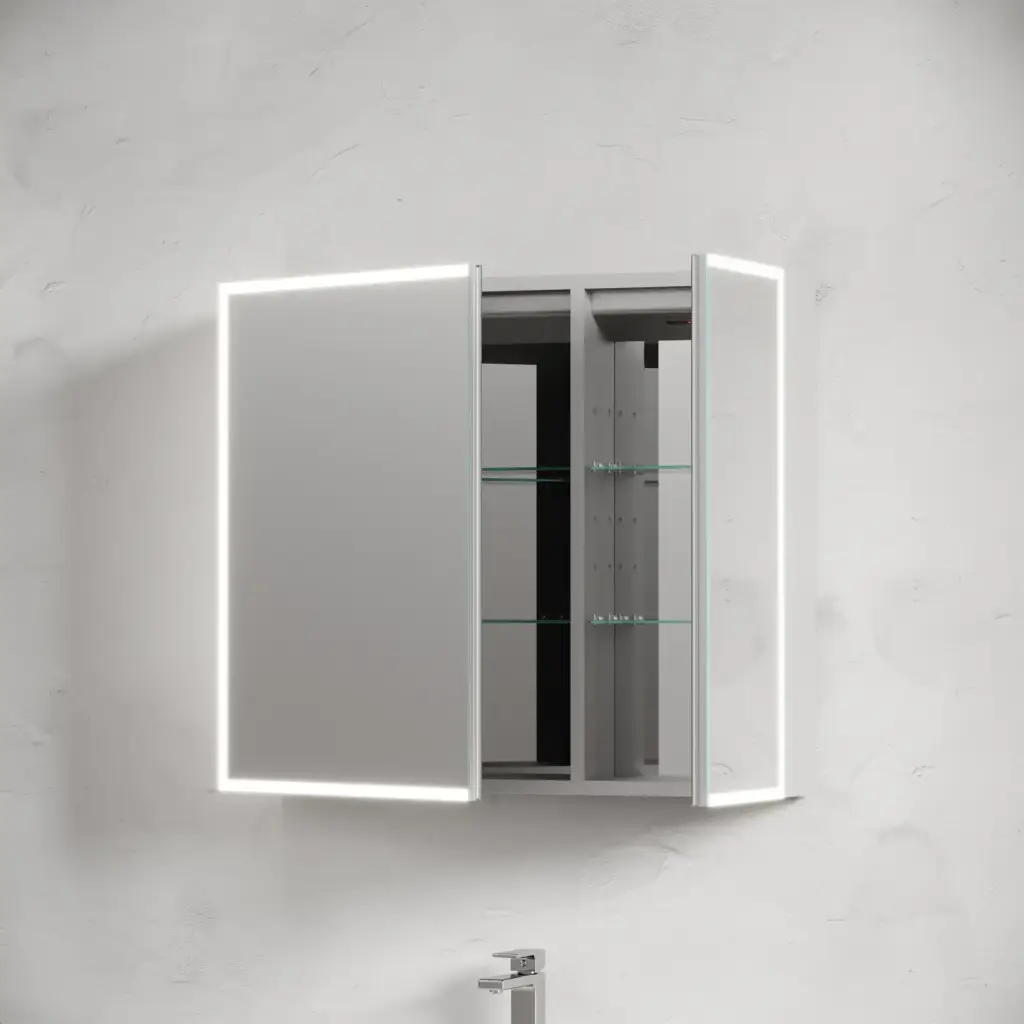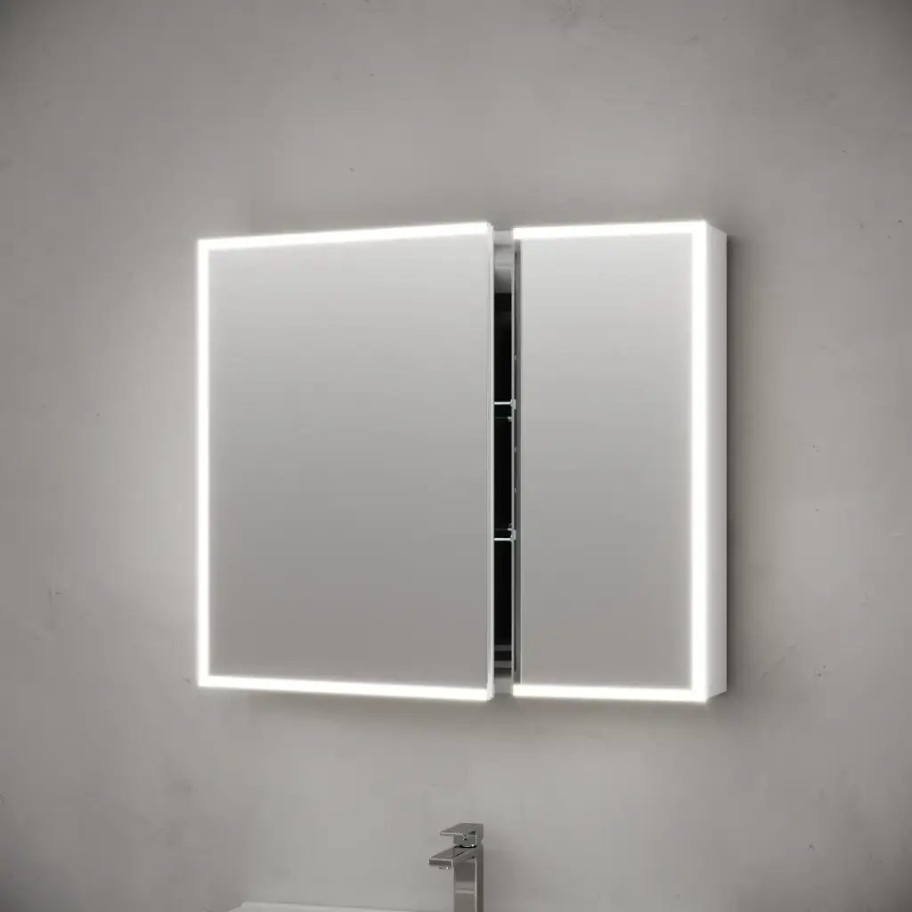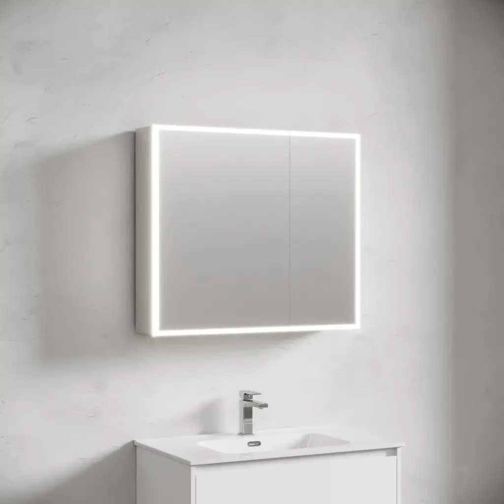Зеркальный шкаф для ванной комнаты из алюминия SANCOS Evoke 800x700х136 мм с LED подсветкой арт. SC8080