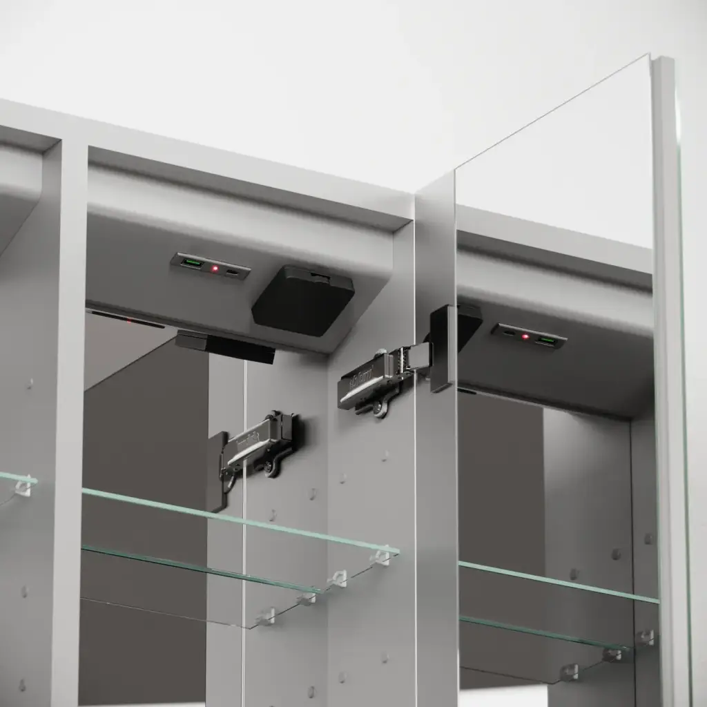 LED подсветка 5000K, бесконтактное управление (движением руки) ; 4 полки из стекла