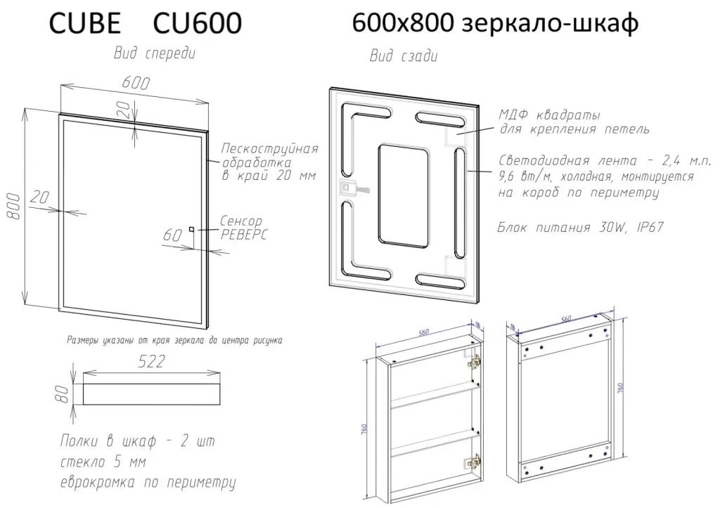Зеркальный шкаф для ванной комнаты SANCOS Куб (Cube) 600х140х800 с подсветкой, арт.CU600