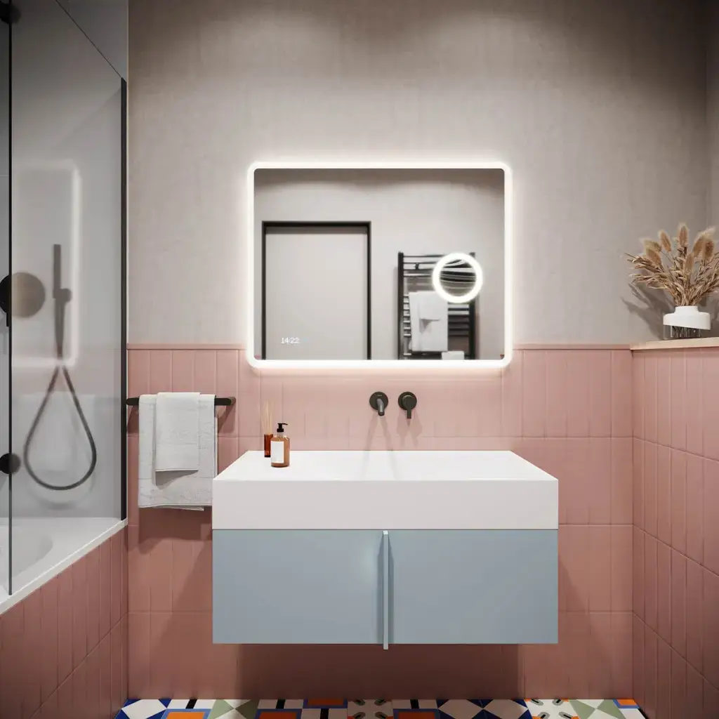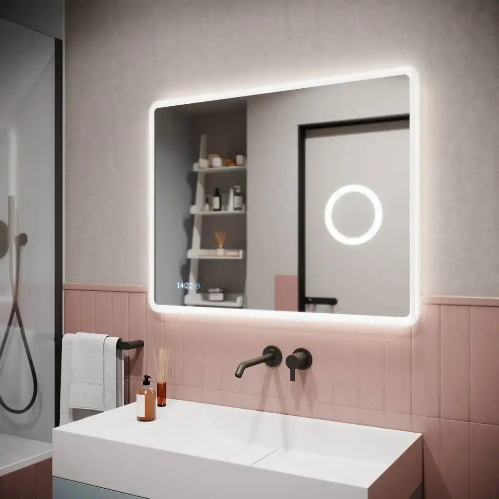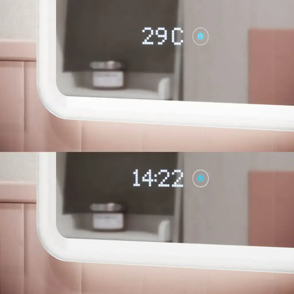 LED подсветка, сенсор на касание, увеличительное зеркало,часы, датчик температуры