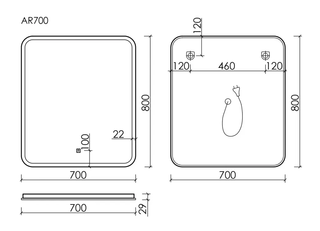 Зеркало для ванной комнаты SANCOS Аркадия (Arcadia) 700х800 с подсветкой, арт. AR700