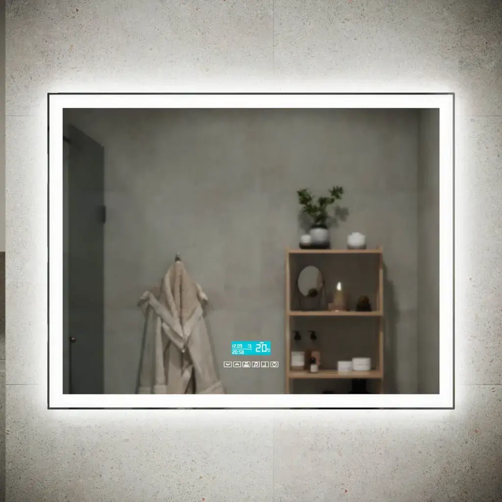 LED подсветка, сенсор вкл/ выкл, много функциональная панель управления: часы, датчик температуры, дата, подогрев, Bluetooth