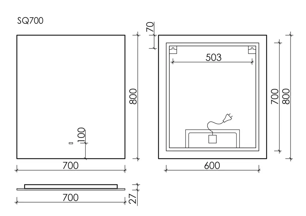 Зеркало для ванной комнаты SANCOS Поле (Square) 700х800 с подсветкой, арт. SQ700
