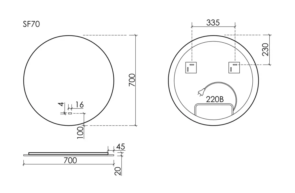 Зеркало для ванной комнаты SANCOS Сфера 2.0 (Сфера (Sfera) 2.0) D700 led подсветка 2700K/4000K/5000K SF2.700